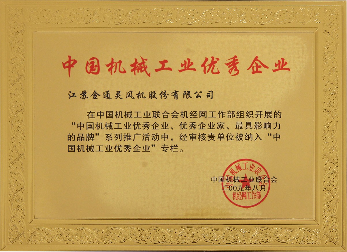 中國(guó)機(jī)械工業(yè)優(yōu)秀企業(yè)